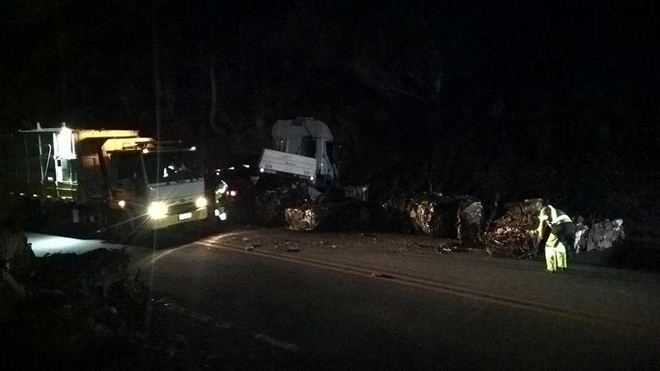 O veículo de placa KVJ 7231, licenciado na cidade de Resende (RJ) com identificação da empresa Transfuturo que transportava uma grande quantidade de sucata atravessou a pista em uma reta vindo a espalhar todo o material na pista.