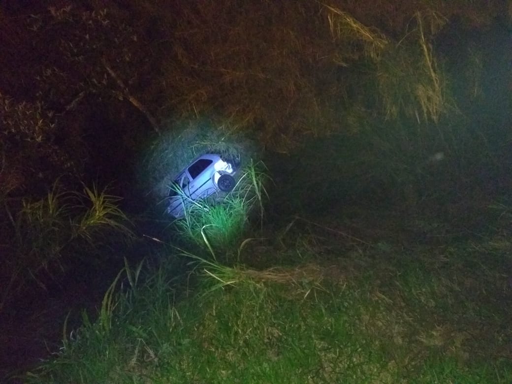Ao tentar desviar do animal, o condutor que seguia sozinho acabou caindo em um barranco nas proximidades do local e seu carro sumiu em meio ao matagal.