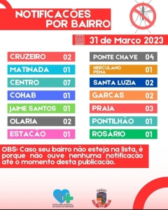 Foi divulgado também o boletim por bairros que pode ser visualizado abaixo.