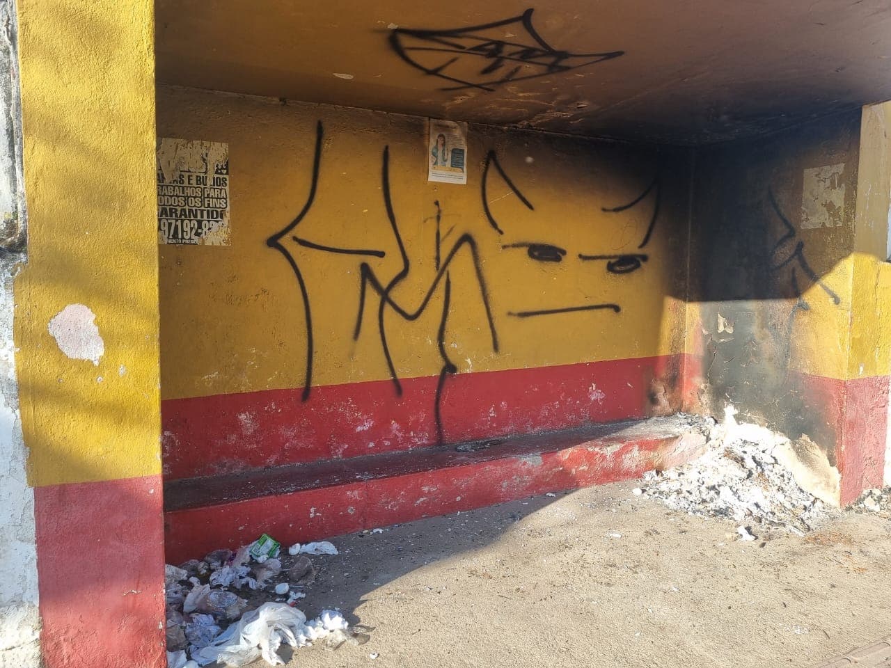 Ponto de ônibus na passarela de Carandaí é alvo de vandalismo durante a madrugada