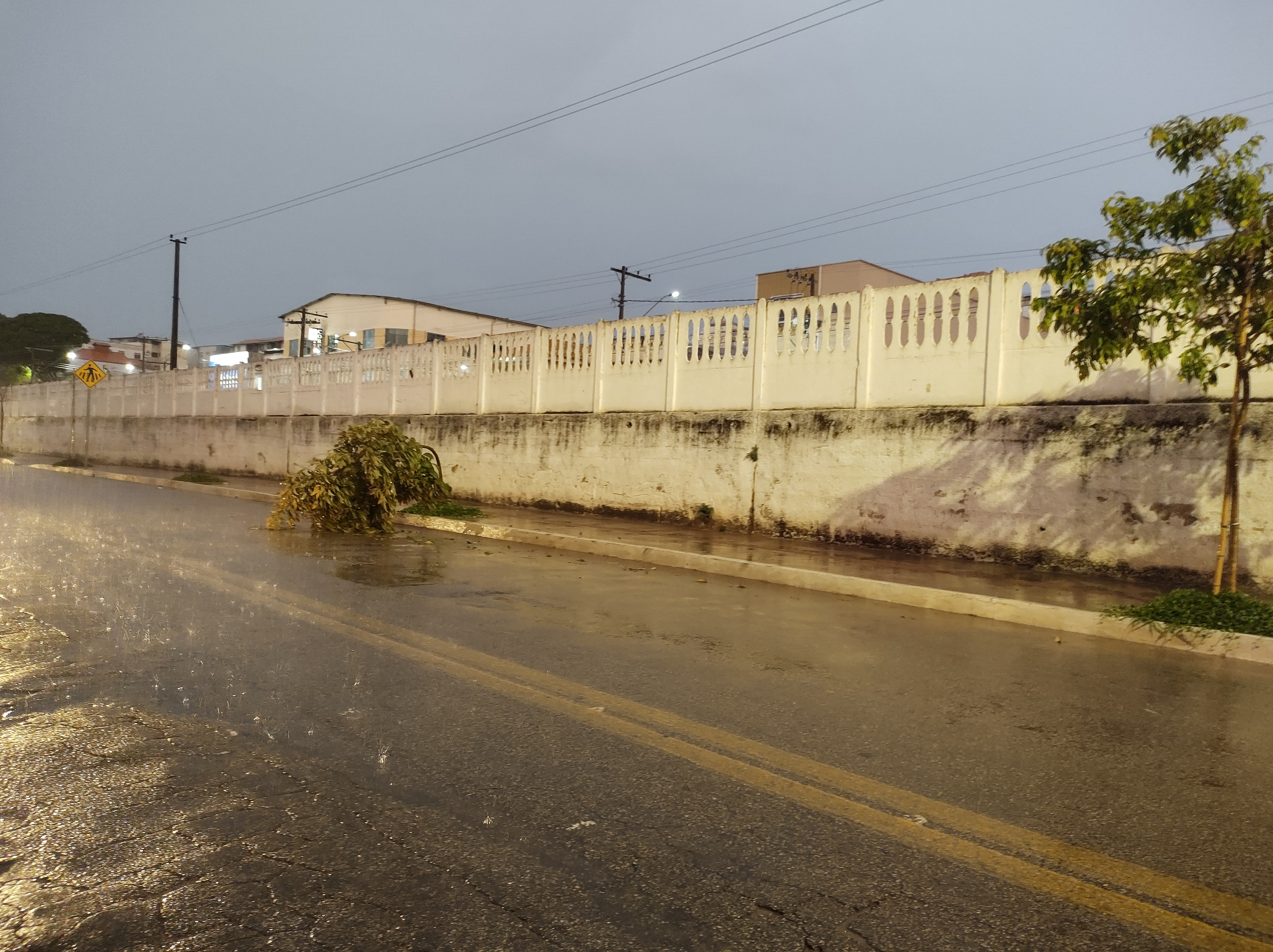 Em alguns bairros, moradores relataram quebra de telhas, porém a defesa civil do município ainda trabalhava no monitoramento das áreas até o fechamento desta edição.