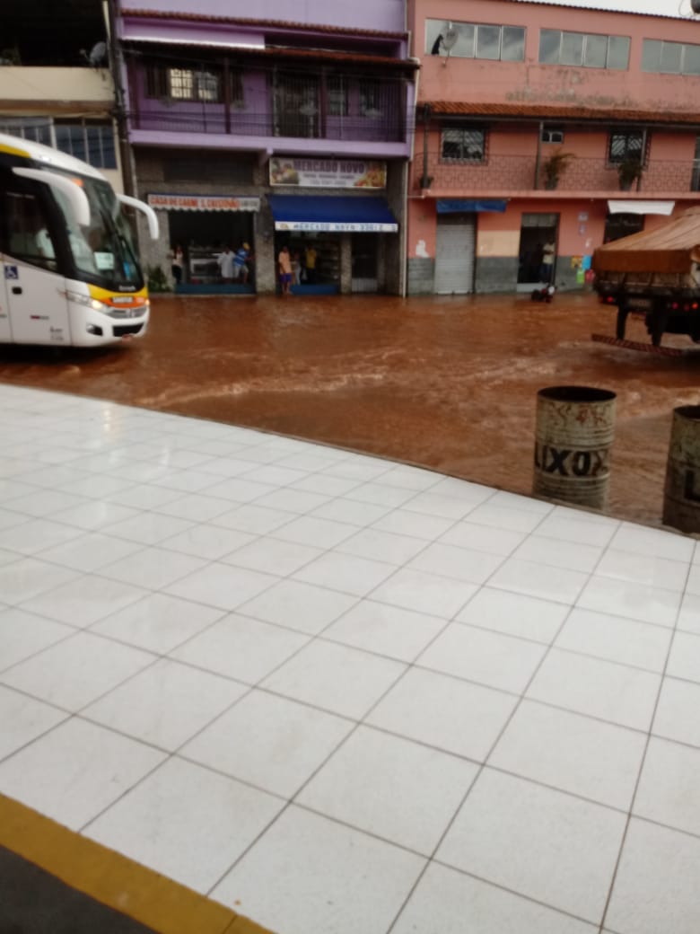 A rápida pancada de chuva no final da tarde desta Quinta (01) trouxe novamente problemas aos comerciantes e moradores do calçadão e da Estação em Carandaí.