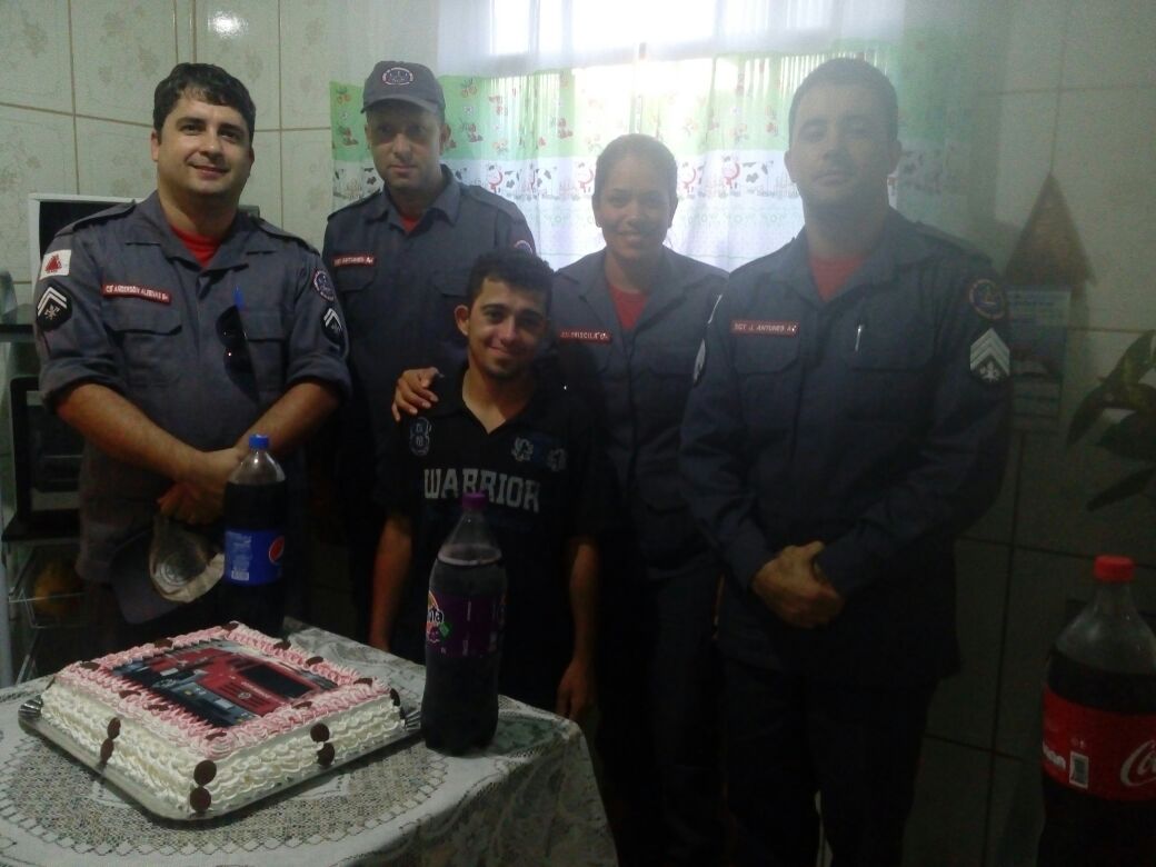 Além da festa de aniversário preparada pela família com o tema da corporação, ele foi surpreendido no momento da comemoração pela presença de uma guarnição do Corpo de Bombeiros Militar de Conselheiro Lafaiete.
