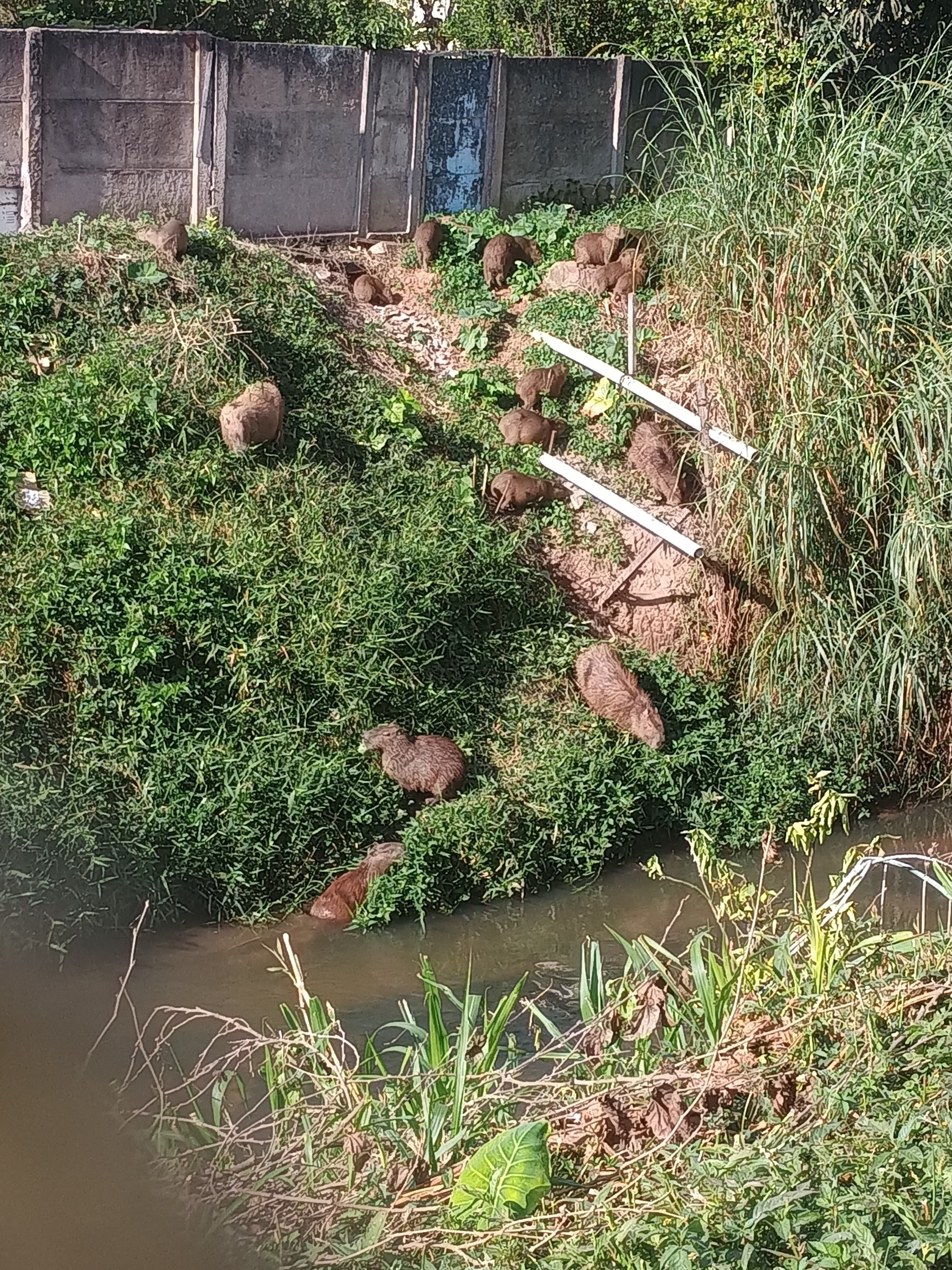 Moradores da Avenida Brasil voltaram a registrar a presença de capivaras nas proximidades do rio que corta a região, nas imediações do parque de exposições. As imagens, feitas por um proprietário de uma oficina local, mostram um grande número de animais inclusive com vários filhotes, o que chamou ainda mais a atenção de quem vive nas redondezas.