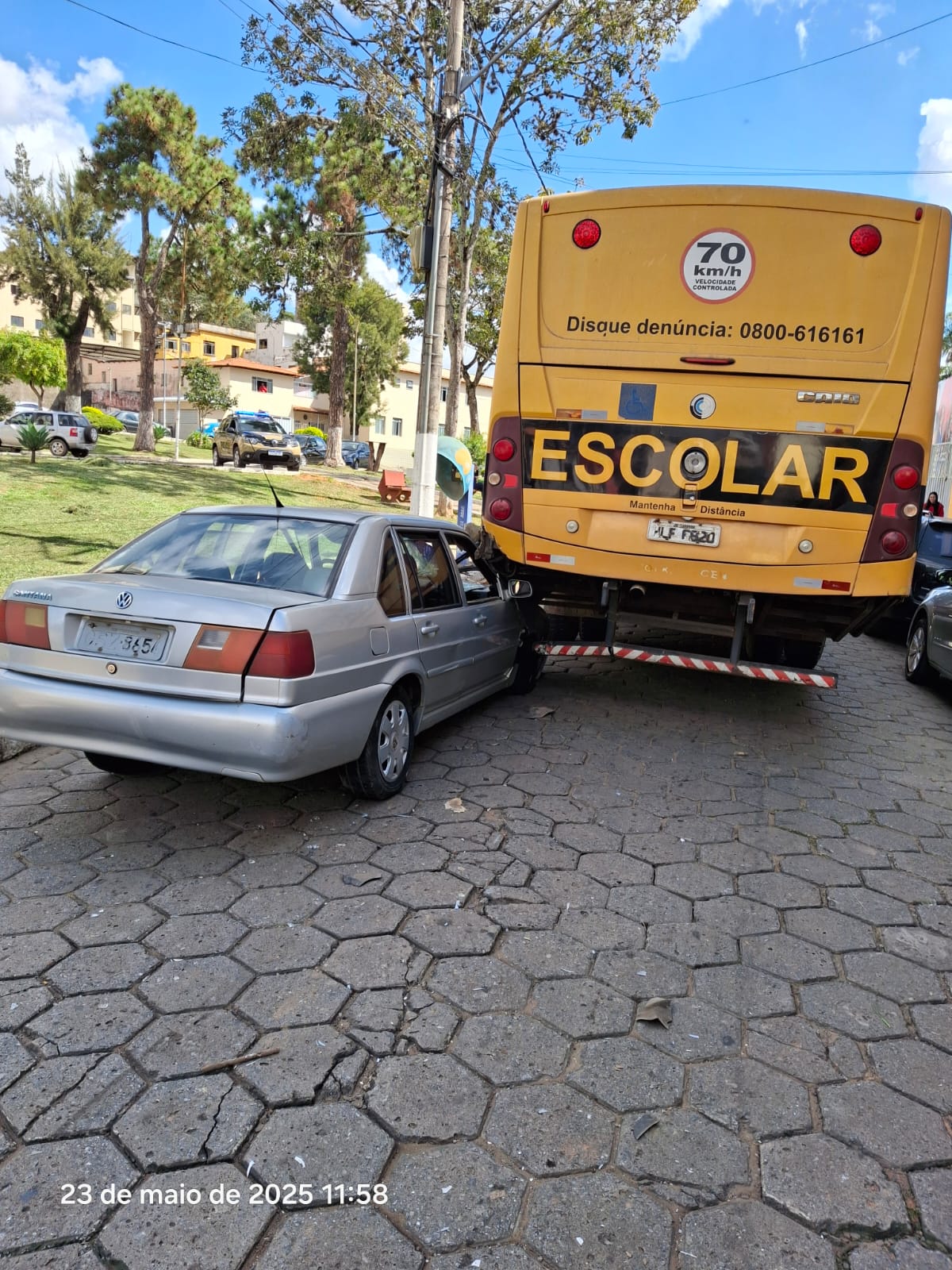 De acordo com informações da Polícia Militar, que foi rapidamente acionada por populares, o condutor do carro sofreu um mal súbito,por volta das 11 da mnhã, descendo o morro e batendo contra o ônibus que transportava crianças da rede municipal de ensino.