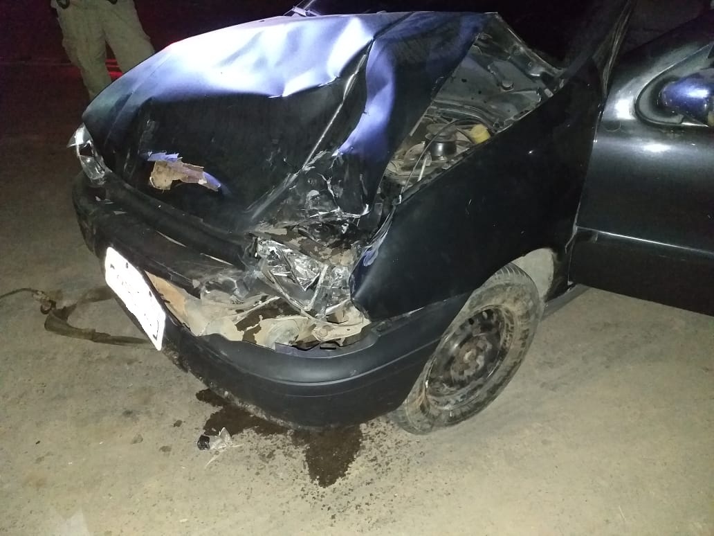 O condutor de veículo Palio ao trafegar pela passagem de nível do bairro Ponte Chave/ Matinada, colidiu com uma carreta estacionada no acostamento.