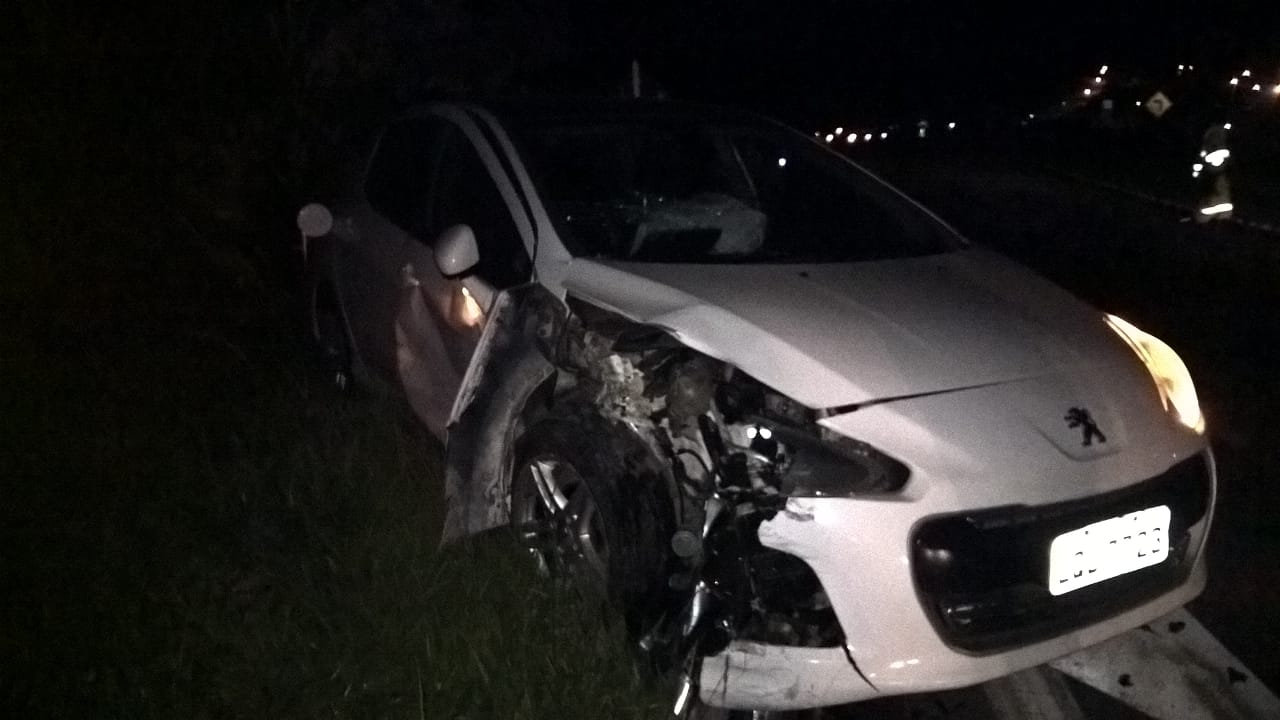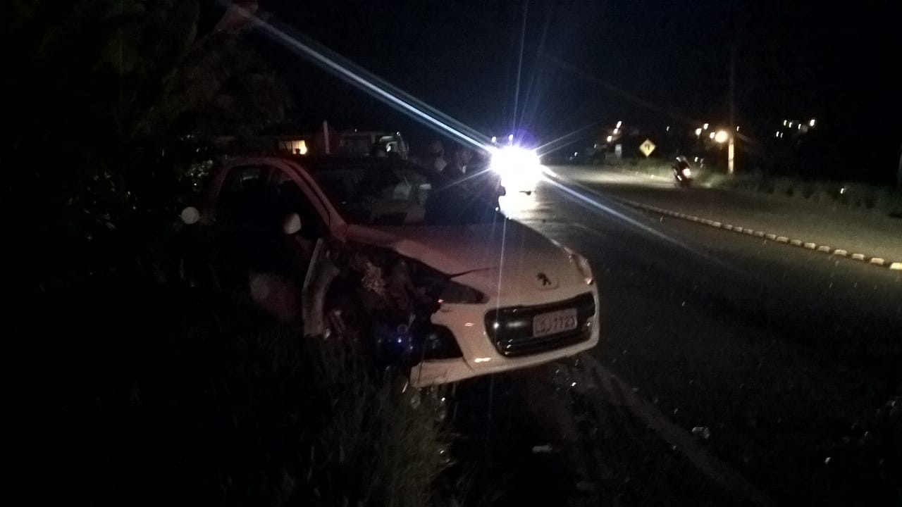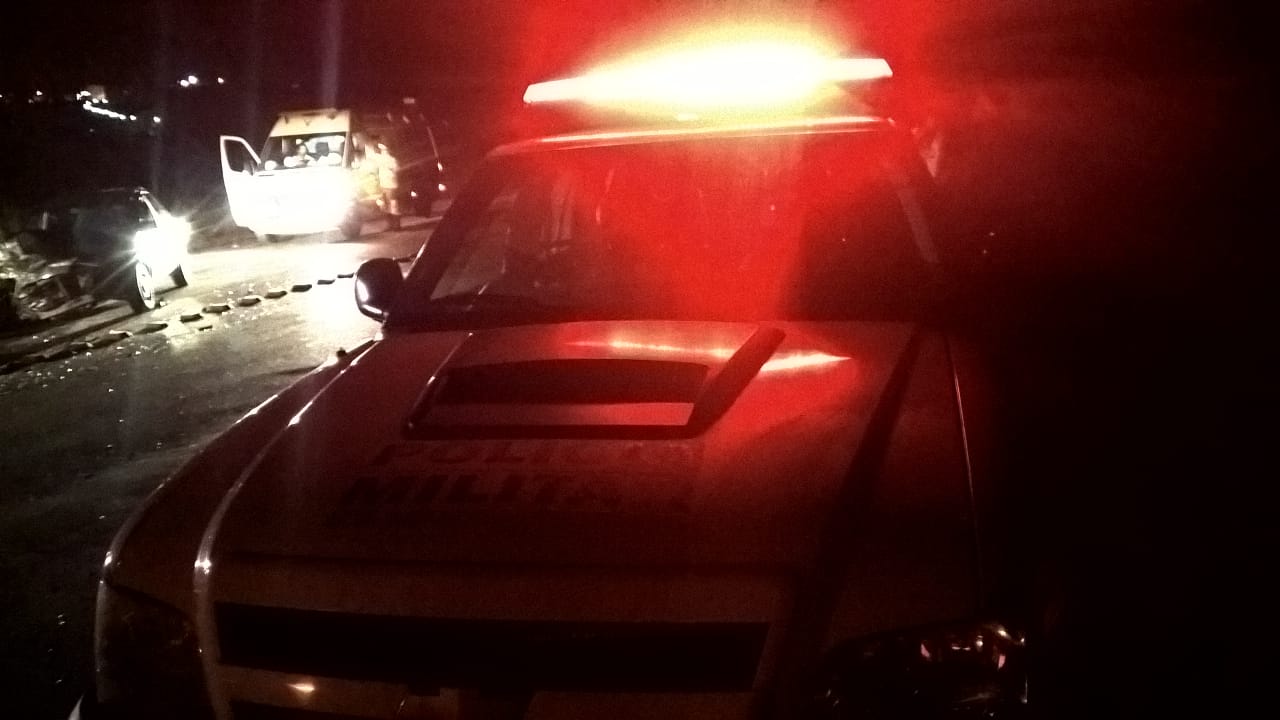 Por volta de 23 horas, um Corsa da cidade de Carandaí atingiu a contra mão e bateu de frente em um Peugeot 308 (LQJ 7723) licenciado no Rio de Janeiro.