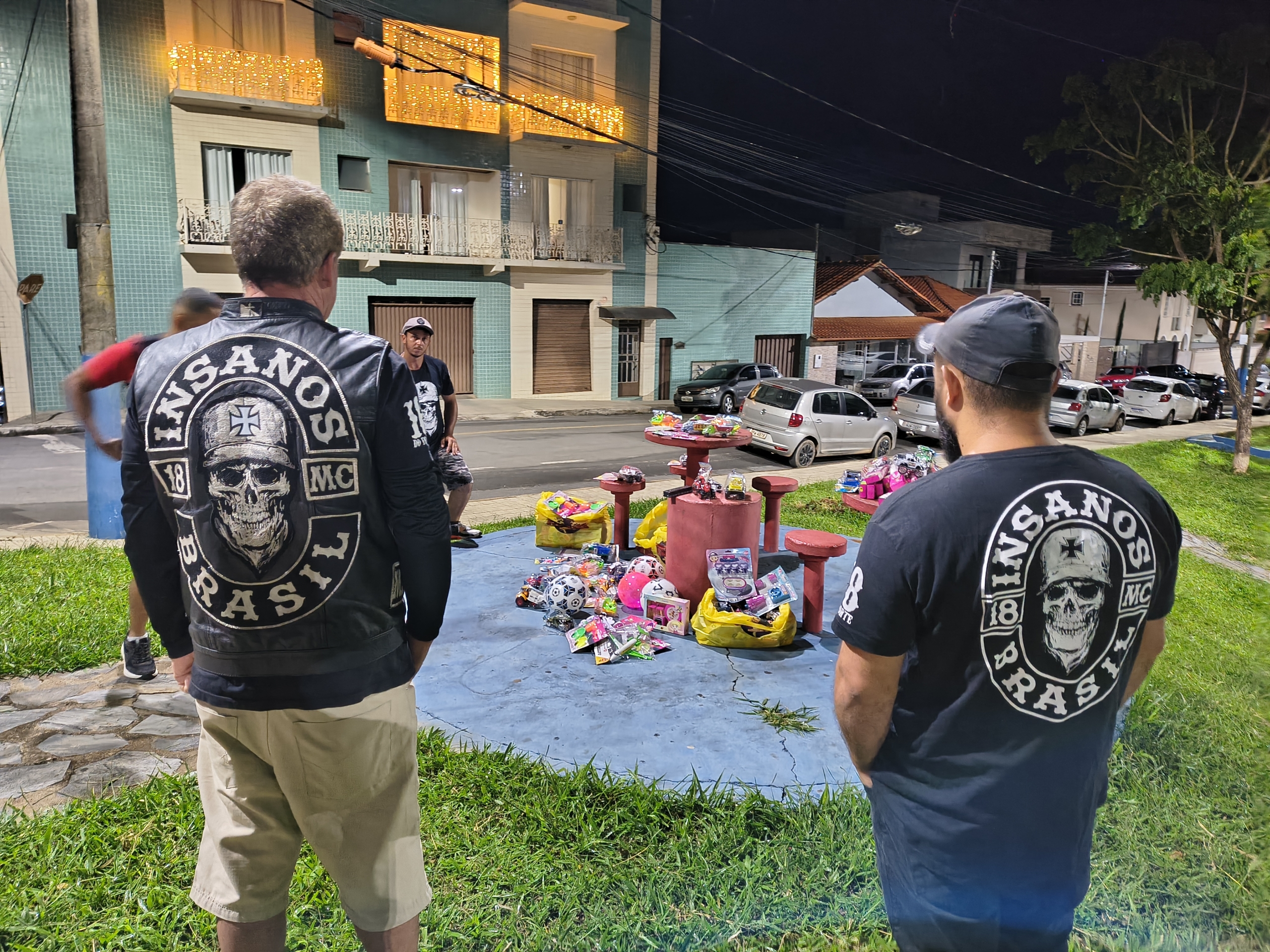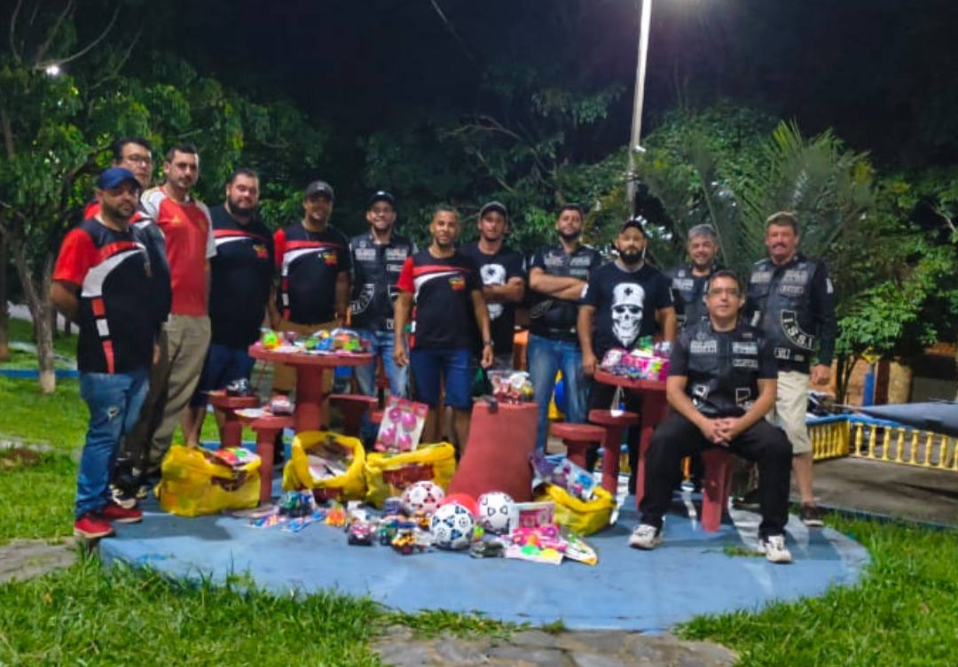 A entrega dos brinquedos arrecadados pelos motoristas aconteceu na noite desta terça-feira, no espaço conhecido como Praça do Avião, marcando mais um momento de união entre diferentes setores da comunidade em prol de uma causa social.