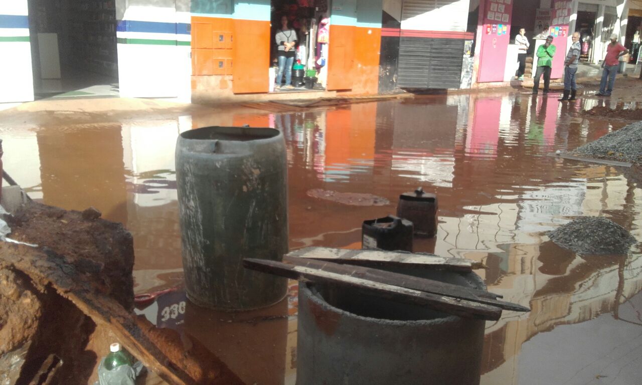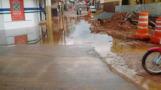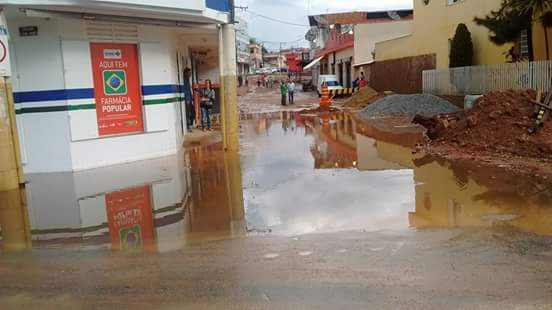 A rua que ainda não foi devidamente calçada transformou -se em um lamaçal a céu aberto, onde em meio aos buracos, o barro se espalhava pela região de comércio do local.