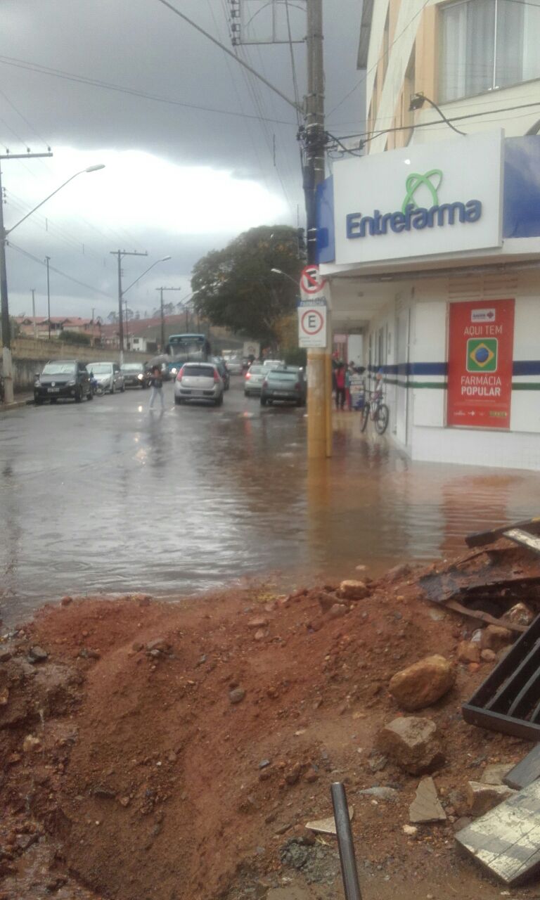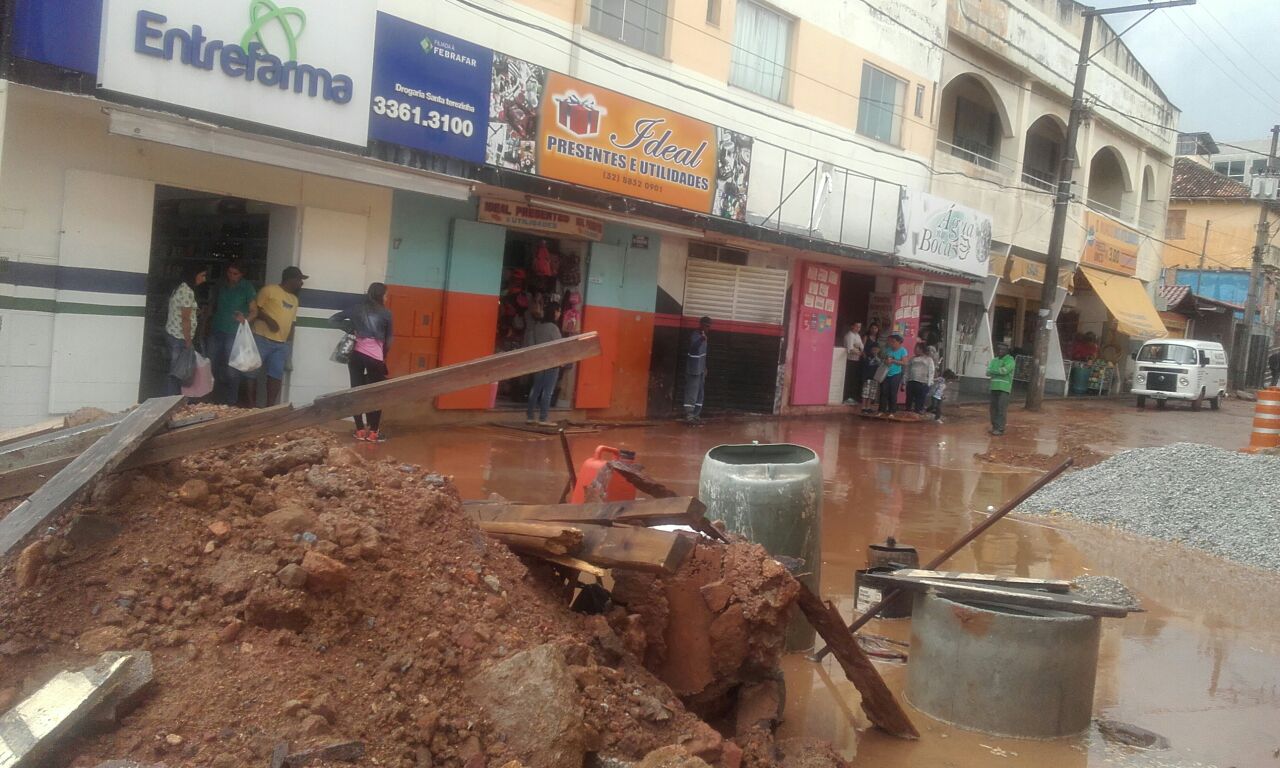 O antigo calçadão de Carandaí, que tem uma obra adiada por mais de um ano tornou a ser o centro das atenções de pedestres que transitavam na tarde desta Quarta- feira (31) onde uma rápida pancada de chuva trouxe novamente um alagamento na parte final, cruzamento com a rua Raul soares.
