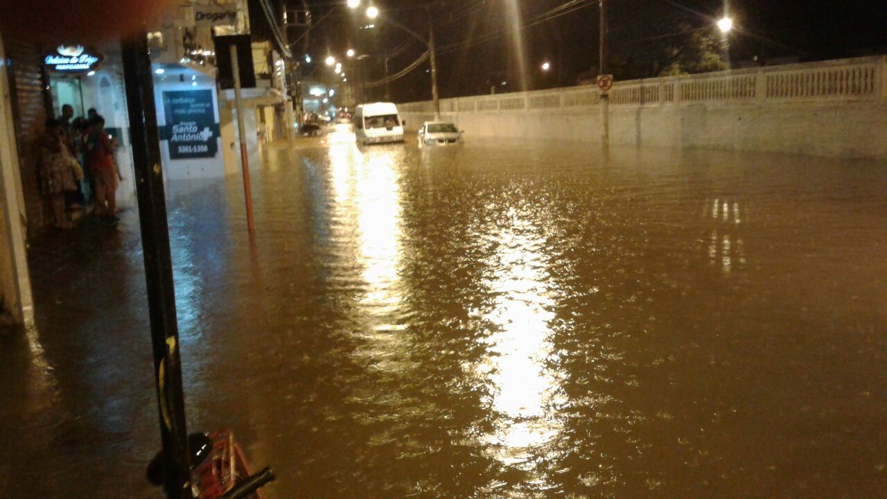 Mais uma vez, uma rápida pancada de chuva que durou cerca de 30 minutos antes de amenizar foi mais uma vez suficiente para que a região central da cidade mais uma vez ficasse alagada.