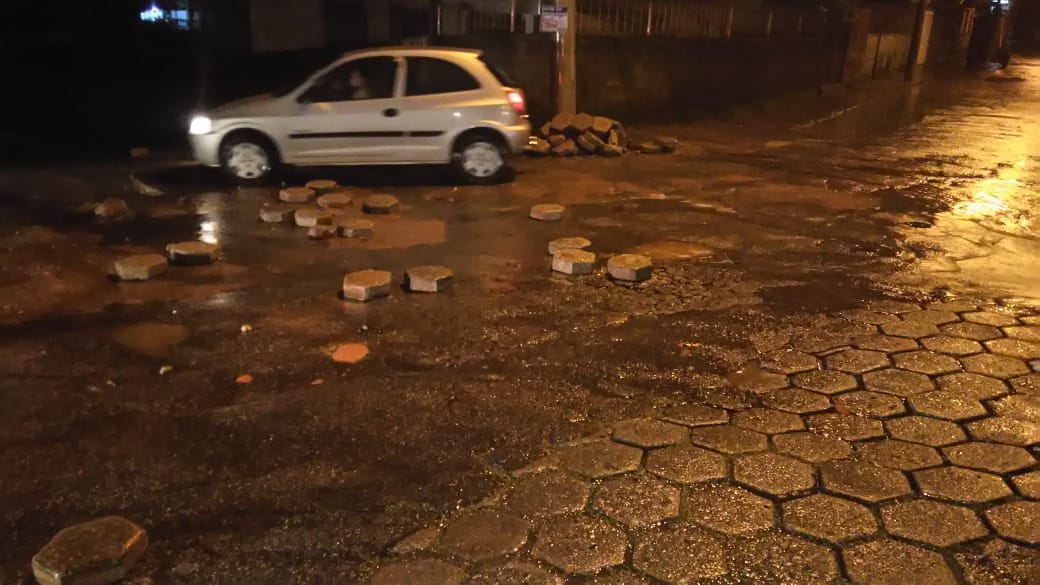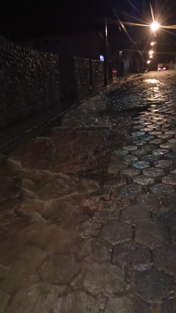 Em uma das ruas adjacentes a Imaculada Conceição, vários blocos do calçamento da rua se soltaram e desceram junto com a enxurrada e nas proximidades do leito do rio na Avenida Brasil o nível da água já estava prestes a alcançar a altura da ponte.