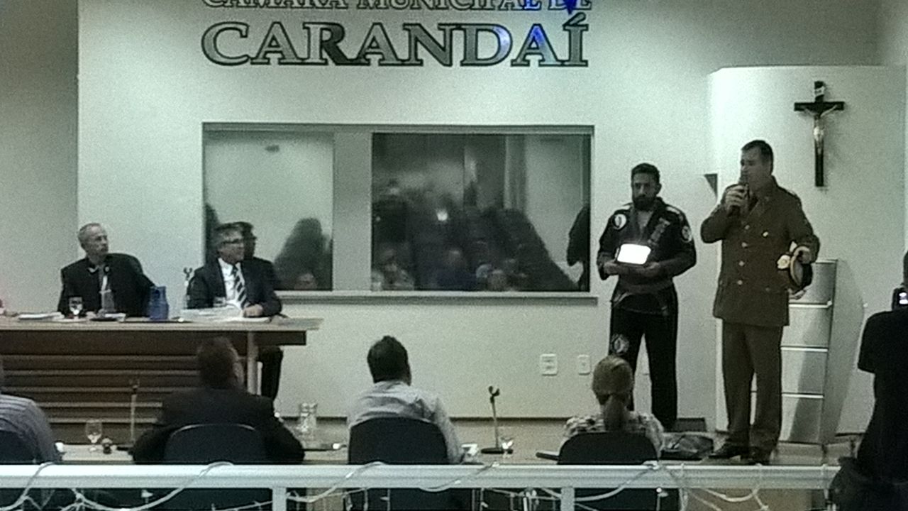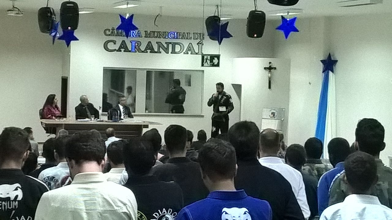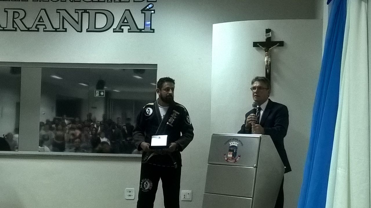 Com muitos aplausos de seus “ Gladiadores”, forma como costuma chamar seus alunos de Jiu Jitsu, o professor agradeceu a homenagem e pediu um maior apoio aos vereadores na próxima administração para o esporte na cidade, lembrando os custos de se manter uma academia e principalmente de participar de várias competições pela região como é de costume de seus alunos.