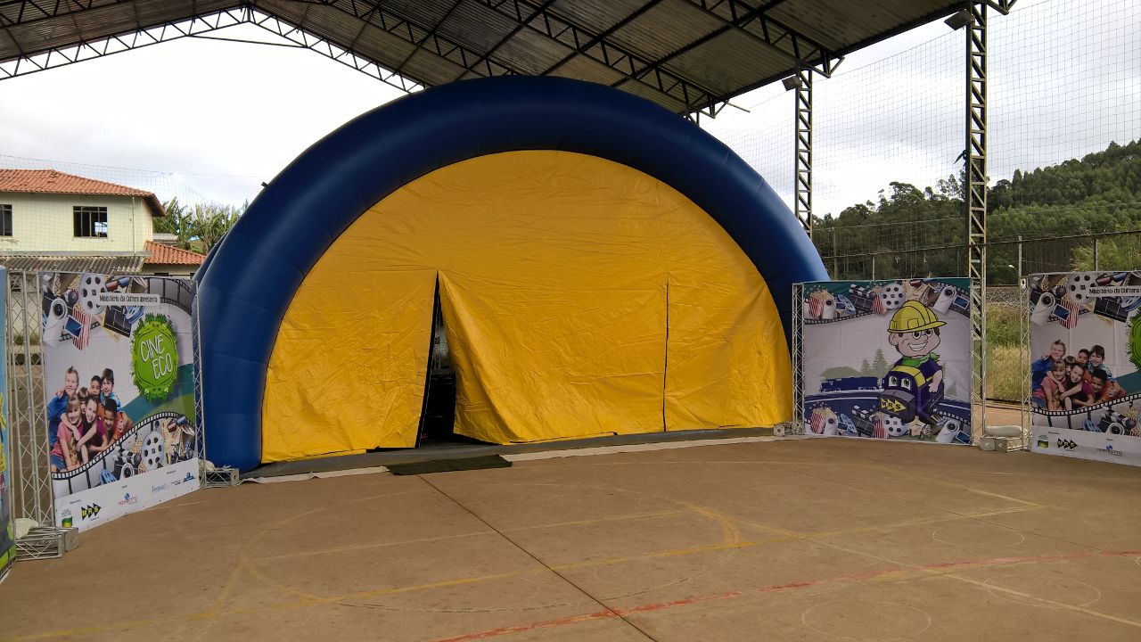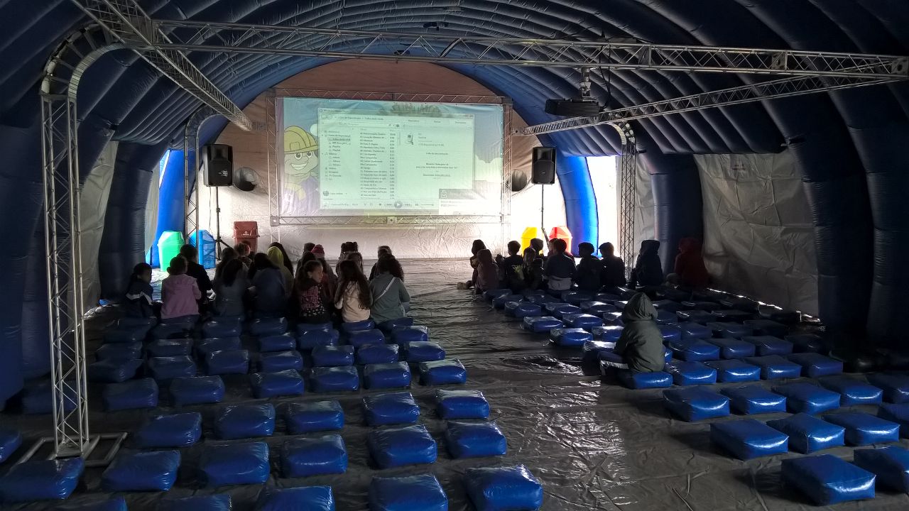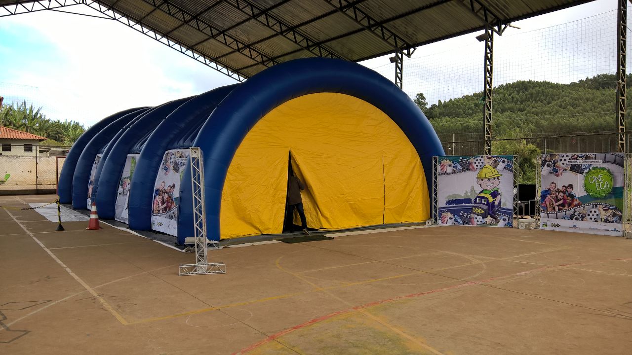 A tenda ecológica da MRS foi montada na manhã desta Segunda (26)na quadra da escola da Ponte Chave, onde alunos do Campestre e Acampamento se juntaram ao da citada escola para a primeira sessão exibida no município.