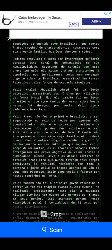 Na madrugada deste sábado (17), o site oficial da Prefeitura Municipal de Carandaí foi alvo de um ataque cibernético. Usuários que acessaram a página encontraram uma mensagem destacando a morte de um jovem palestino por militares, acompanhada de imagens e textos em tom de protesto.