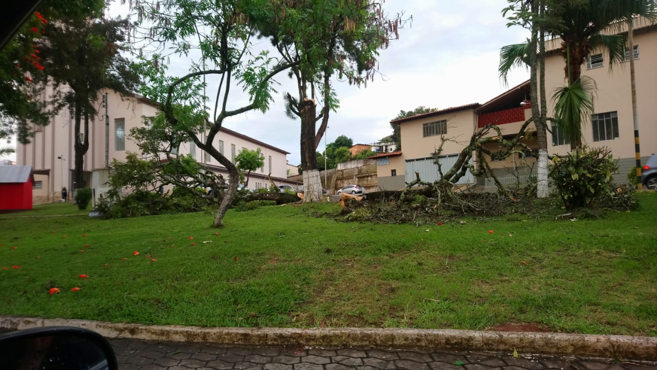 Nos bairros Novo Horizonte e Herculano Pena, várias tampas de caixa d´agua também voaram com o temporal e na praça da igreja Matriz no centro da cidade algumas árvores também vieram ao chão após o temporal.