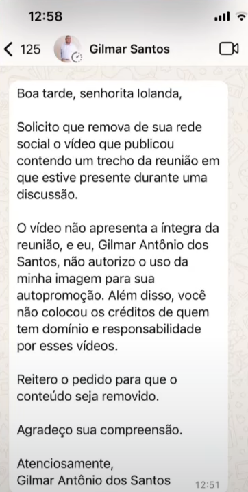Outro ponto polêmico foi a atitude do vereador ao enviar uma mensagem a uma cidadã solicitando que retirasse um vídeo de suas redes sociais. O vídeo em questão continha opiniões sobre o projeto de lei e gerou repercussão entre os munícipes.
